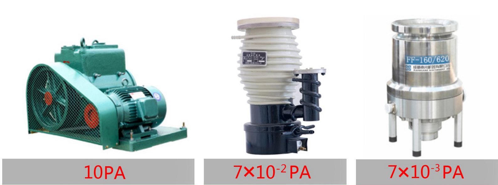 真空度可达到7*10^(-3)Pa (双级旋片真空泵+罗茨泵+扩散泵机组)